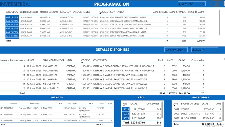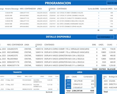 Este proyecto surgió de la necesidad de un cliente en Chile de optimizar el seguimiento de sus importaciones provenientes de China. La gestión de contenedores, tiempos de tránsito y costos asociados generaba una gran cantidad de datos dispersos que dificultaban la toma de decisiones rápidas. El objetivo principal fue centralizar esta información para evitar sobrecostos y retrasos en la cadena de suministro.